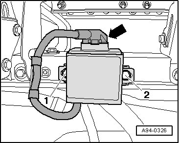 In engine compartment, on hydraulic unit, front left