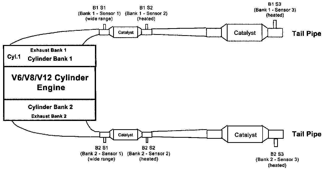 V6/V8/V12 Engine W/2 Exhaust Banks & 3 Catalysts: