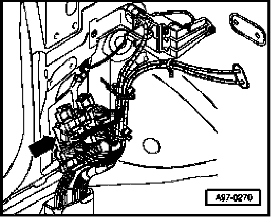 Location: The left connection point -arrow-is located in left of footwell below A-pillar trim.