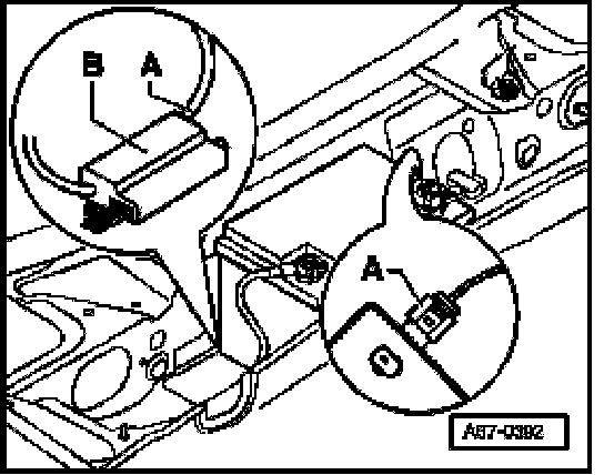 - To avoid a restriction of the air conditioning function, the activation of the Heated Windshield Control Module -J505- has to be interrupted until the damaged windshield defroster -Z2- is replaced. To do this disconnect connector -A- from control module -B-.