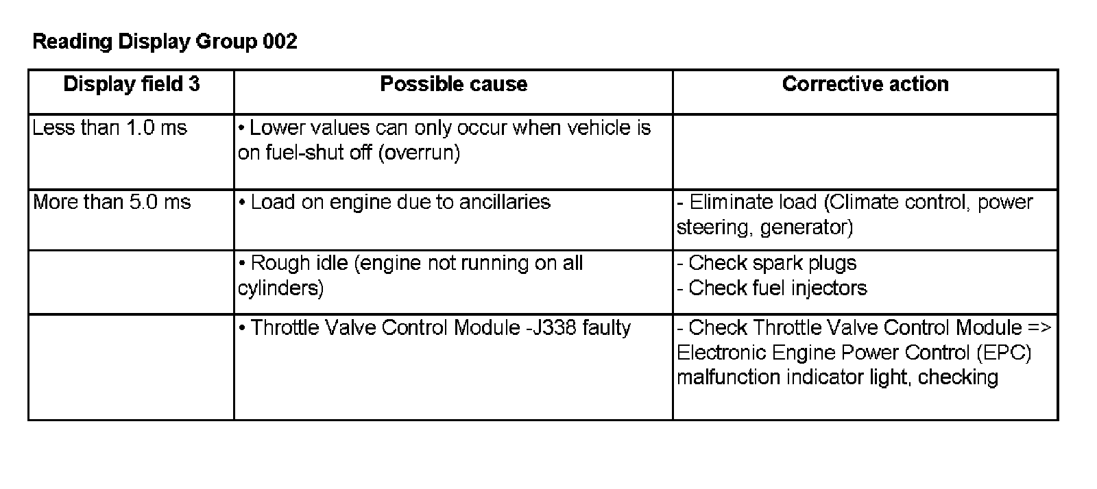 - Check displayed specified values for engine load.