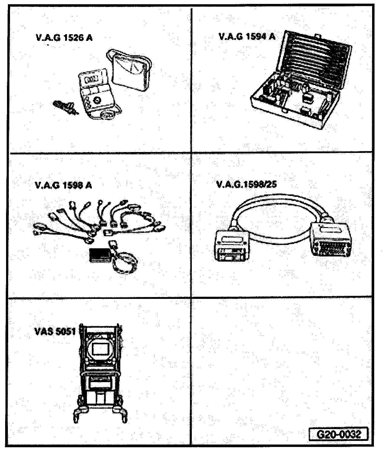 - Connect VAG1598A test box to blue 32-pin multi-pin harness connector using VAG1598/25 adapter.