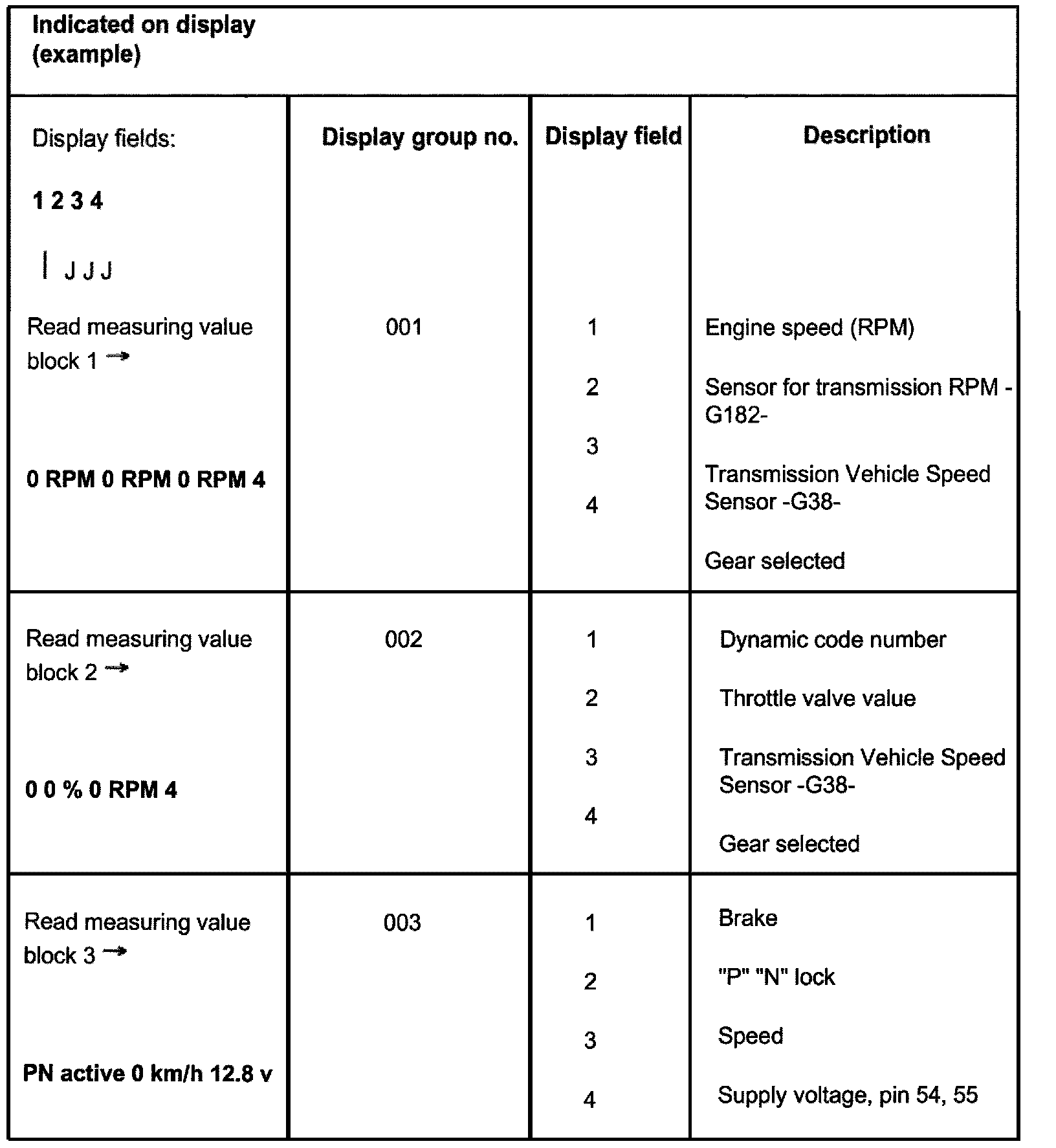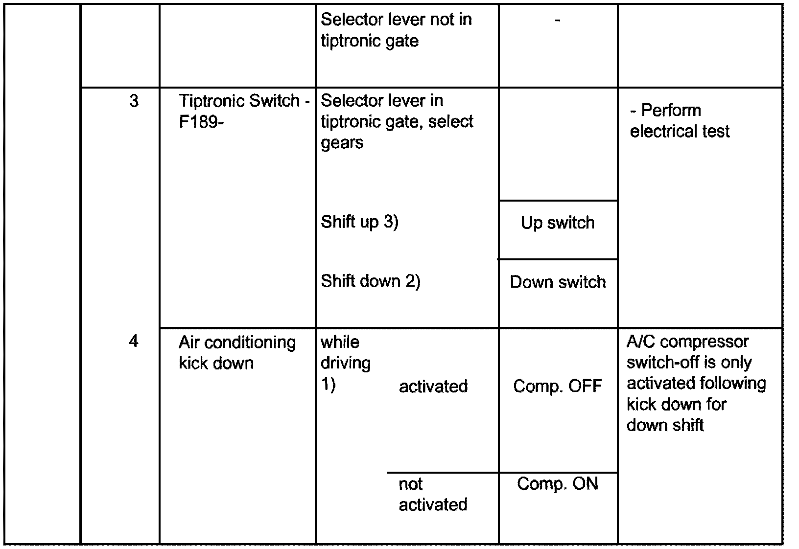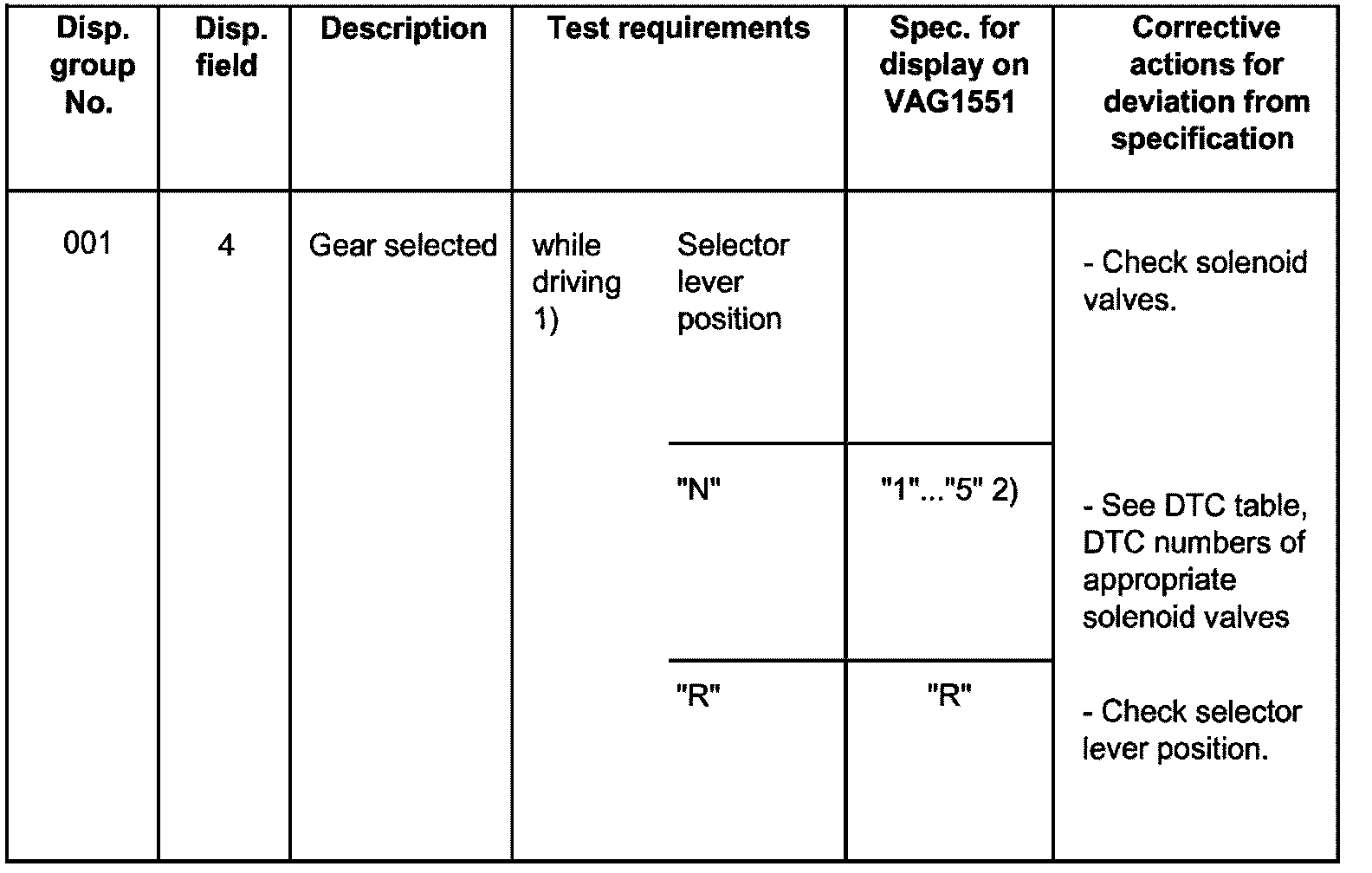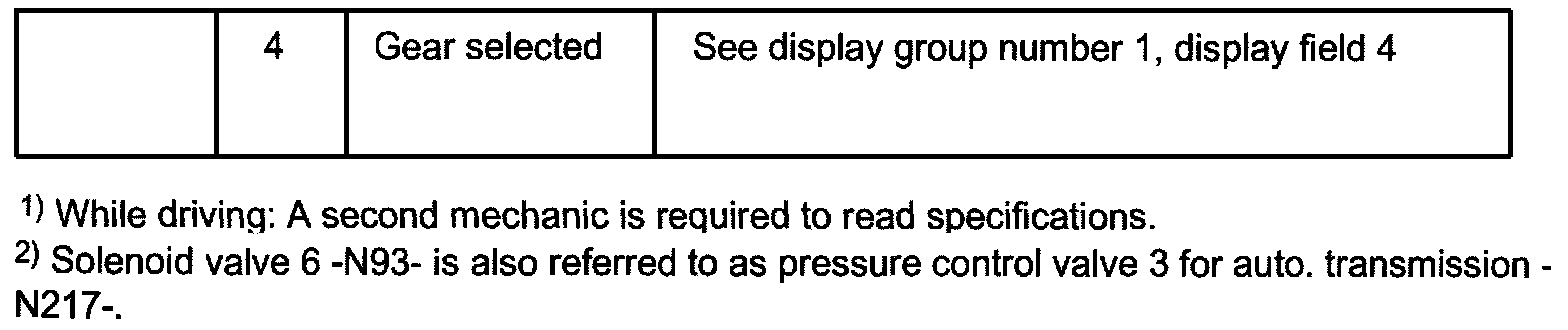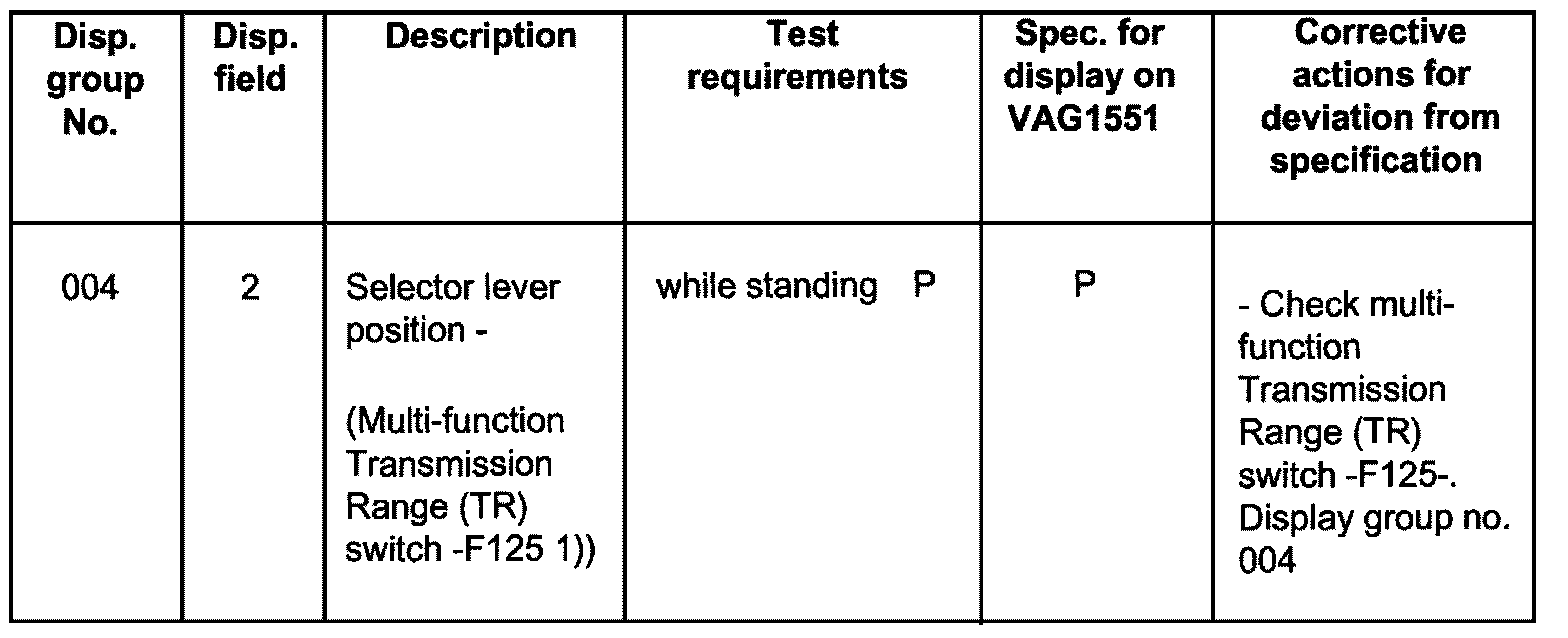 ^ The input signals of the Multi-function Transmission Range (TR) switch -F125- 1) can be checked at the Transmission Control Module (TCM).