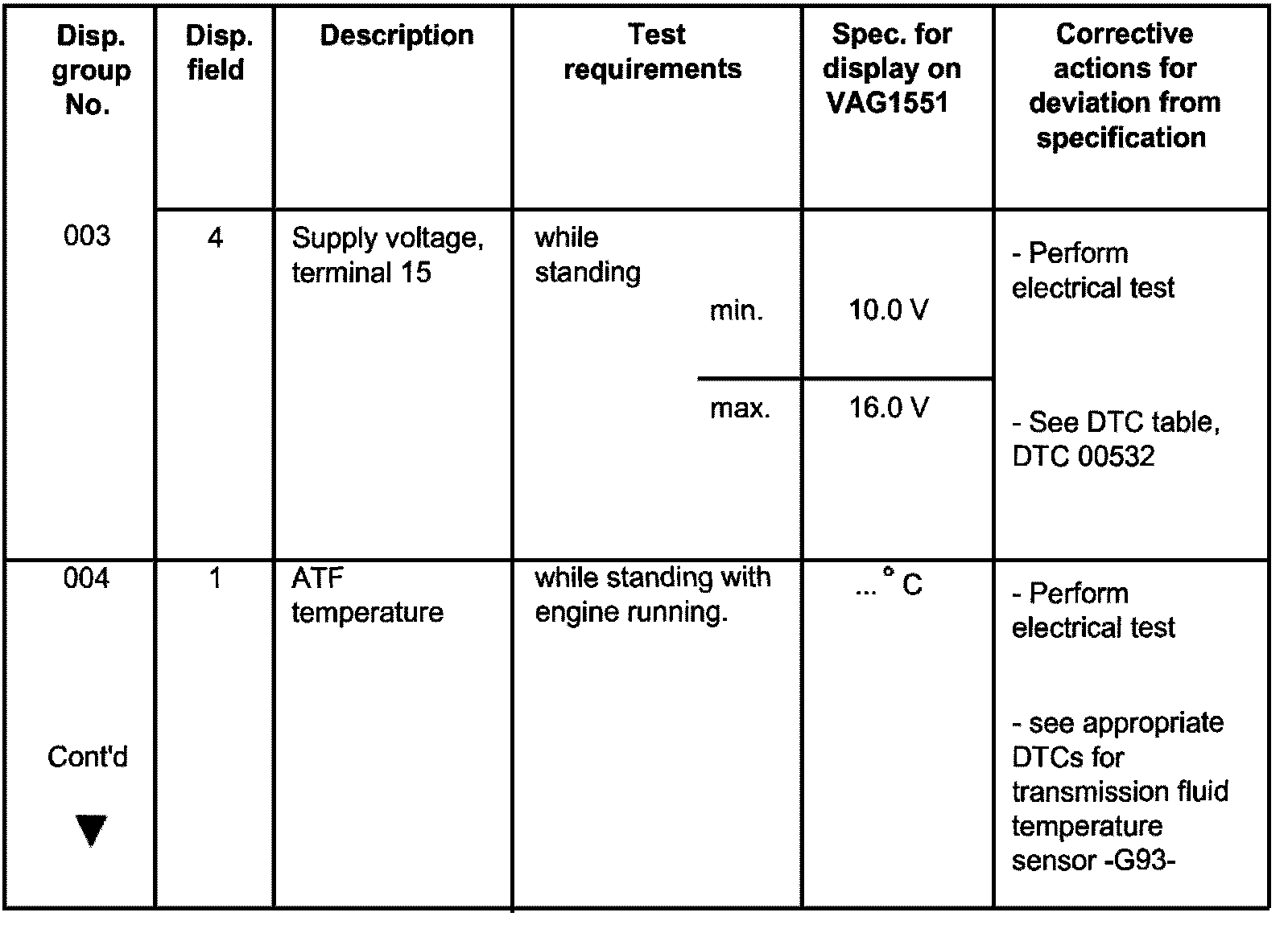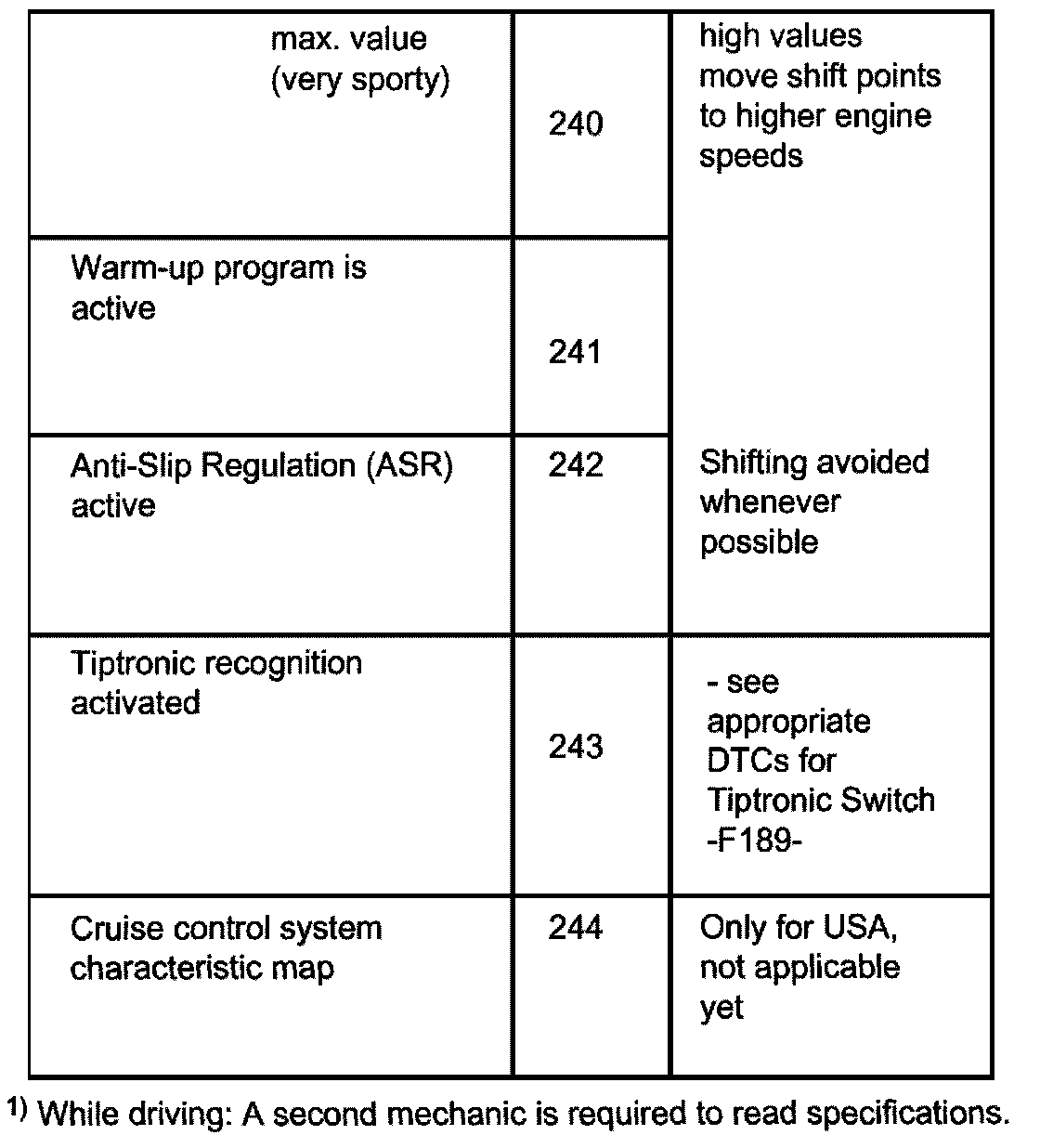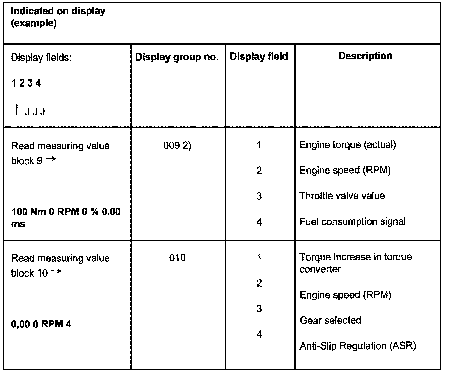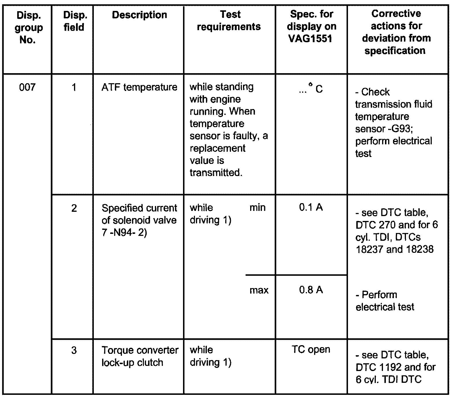 ^ Engine intervention is only activated during the shifting process. Depending on the driving situation, engine intervention may only be activated briefly, i.e. the relatively slow data transfer to the VAG1551 can miss this brief engine intervention under certain driving conditions.