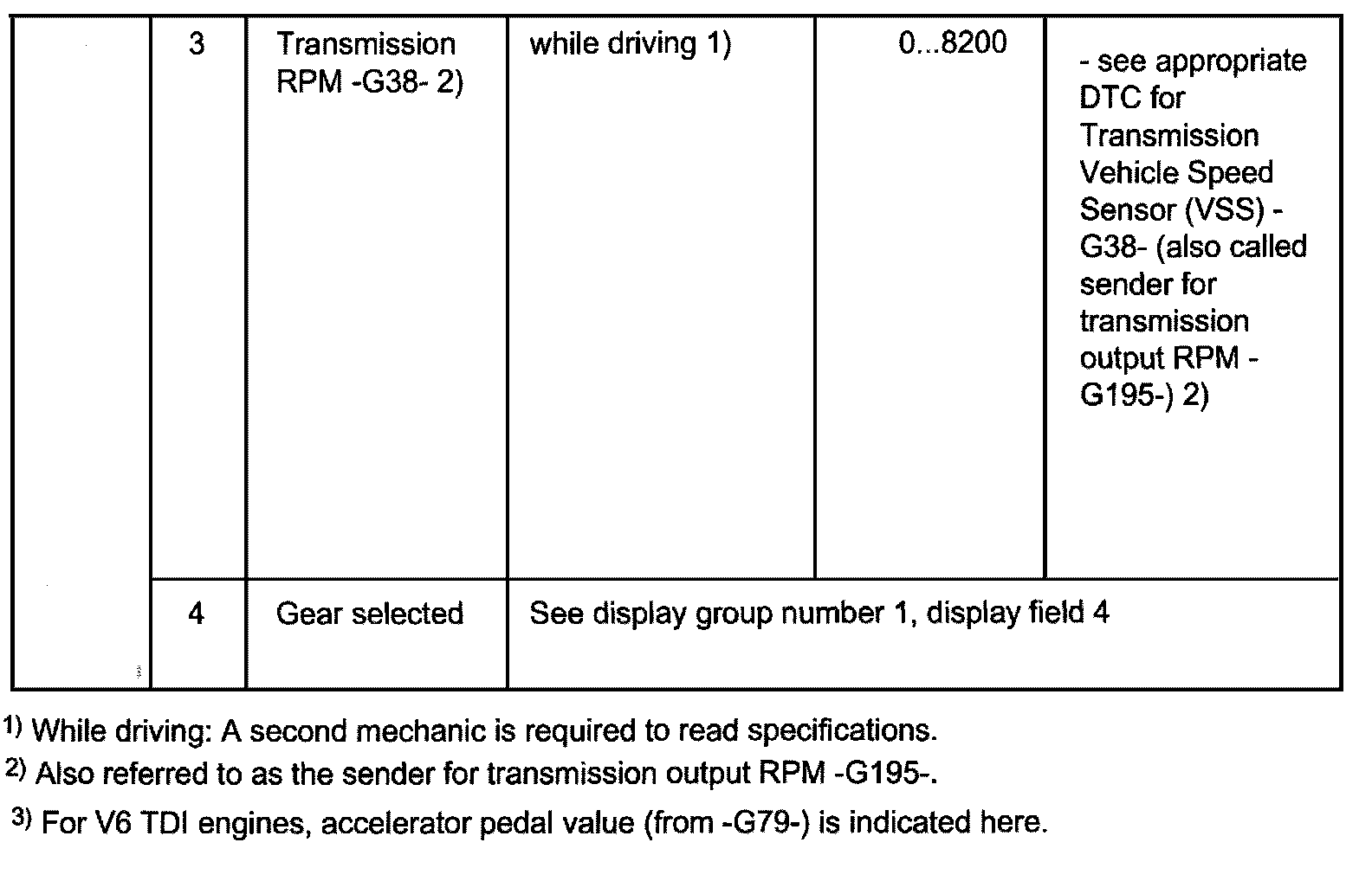 3) For V6 TDI engines, accelerator pedal value (from -G79-) is indicated here.