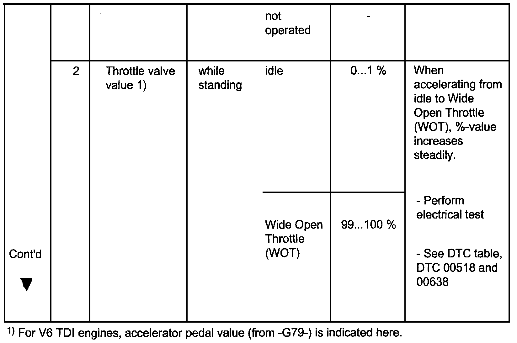 1) For V6 TDI engines, accelerator pedal value (from -G79-) is indicated here.