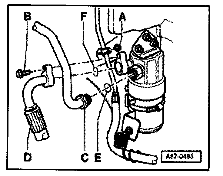 - Remove refrigerant line -B- (tightening torque: 40 Nm).