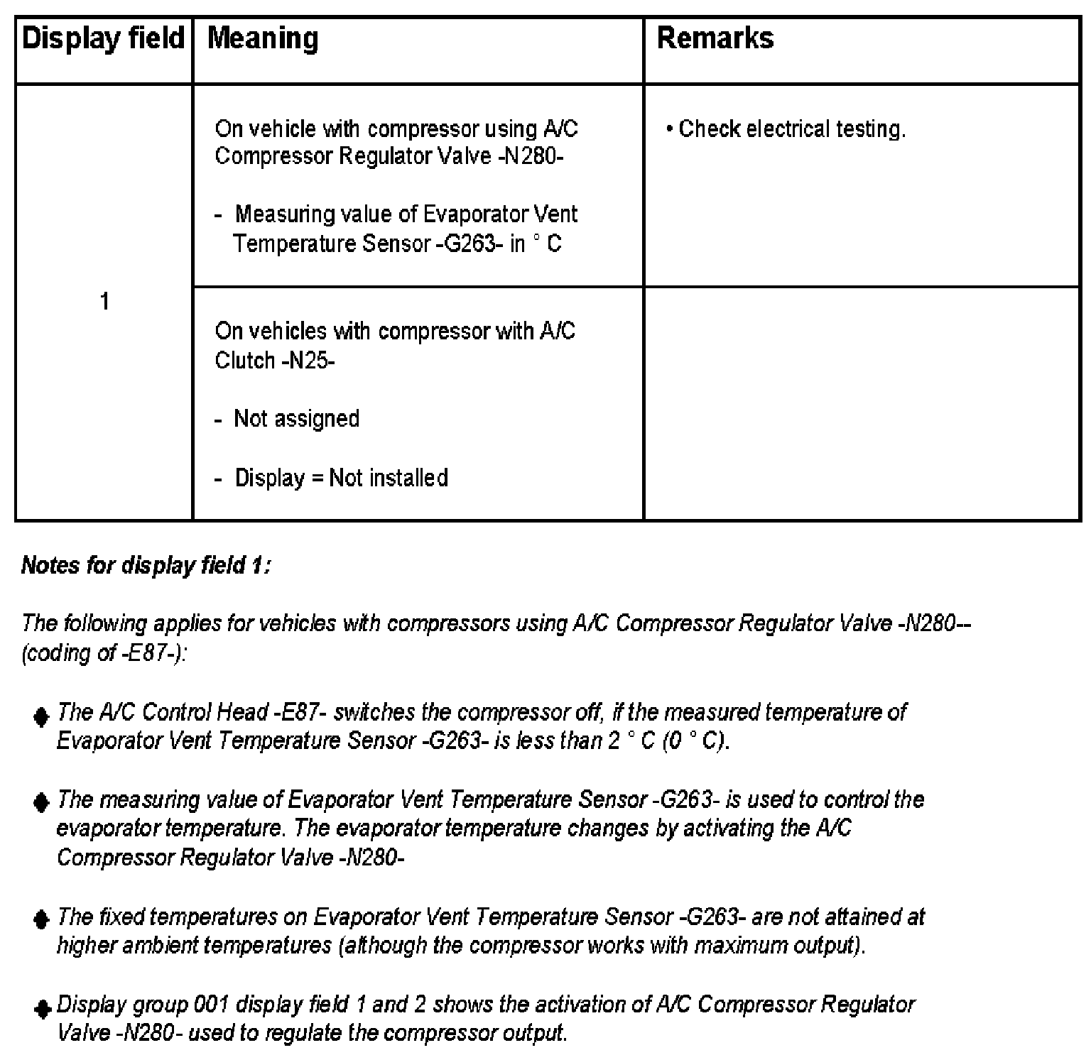- The compressor performance cannot be externally regulated, therefore the Evaporator Vent Temperature Sensor -G263- is not installed.