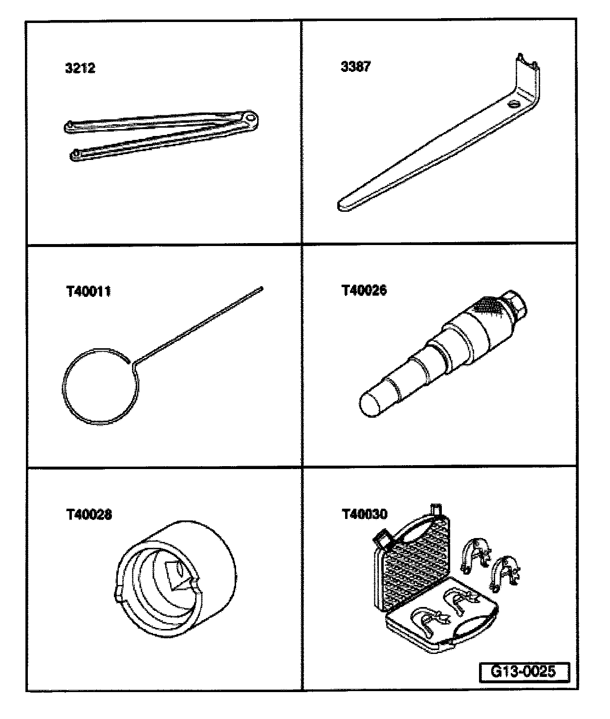 - Remove ribbed belt gear of vane pump (arrows) using 3212 spanner wrench as retainer.