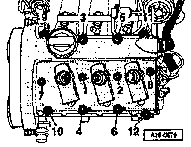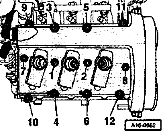 - Unscrew bolts for left cylinder head cover in the sequence 12 to 1.