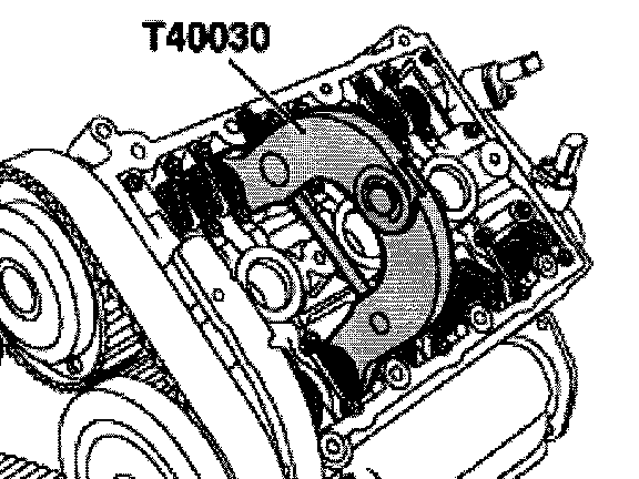 Note: Slightly turn crankshaft back and forth so that the claw of T40030 camshaft adjuster gauge can properly grab the camshafts.