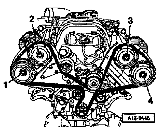 ^ The toothed belt tensioner is oil-dampened. Compress it by slowly applying constant pressure.