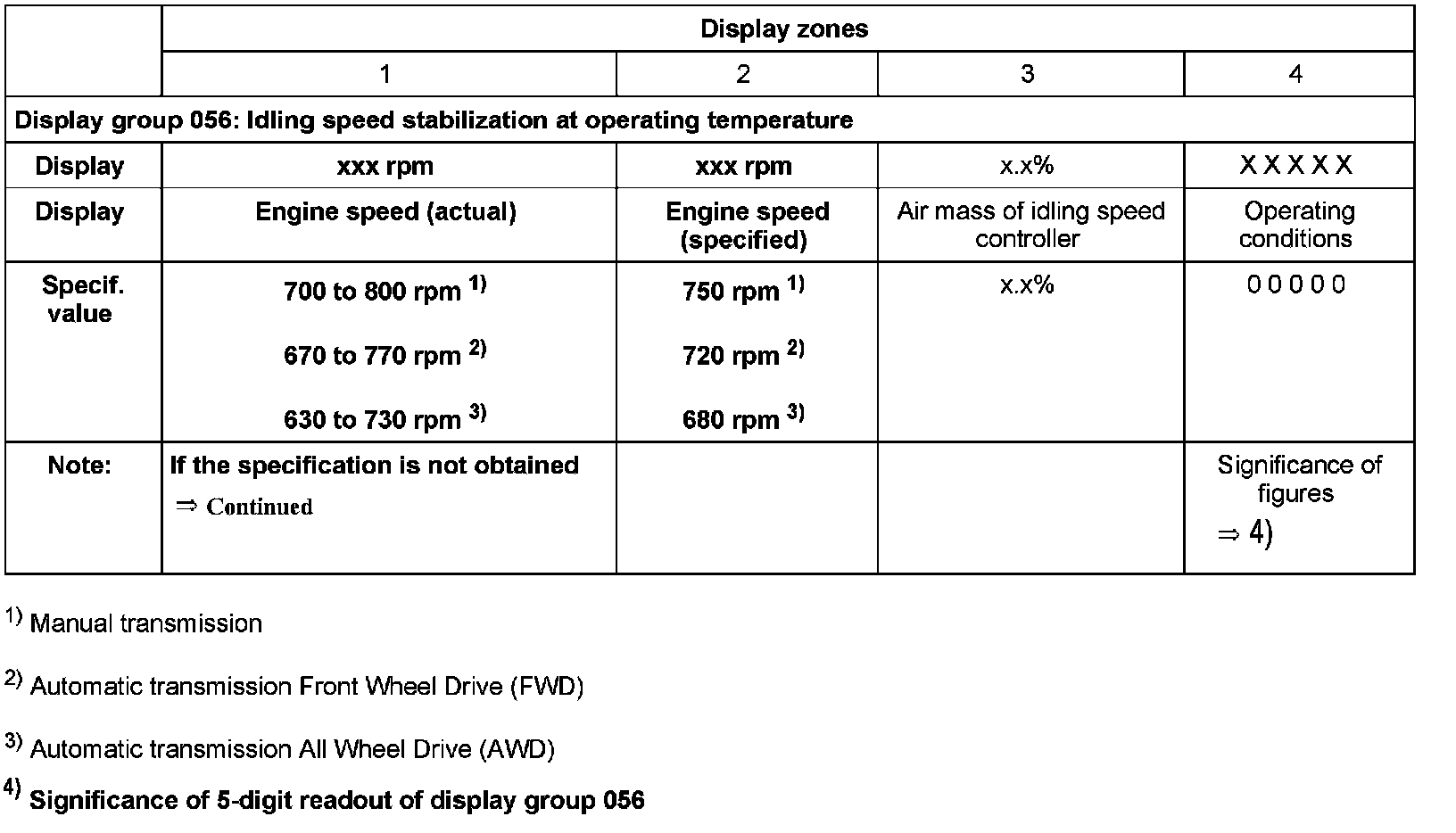 - Display zones 3 and 4 are there for information but are irrelevant to the control of the engine idling speed.