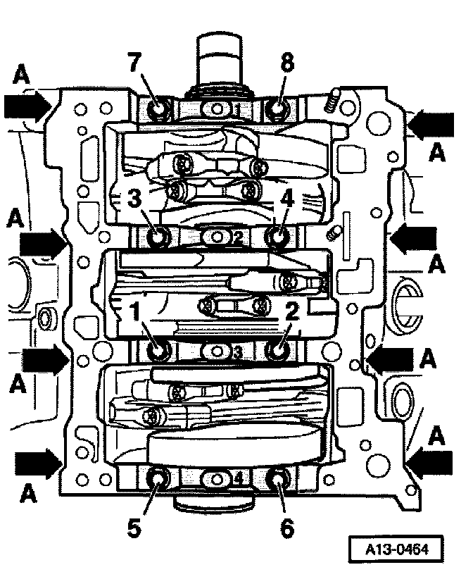- Replace bolts -A- and nuts -1 to 8-.