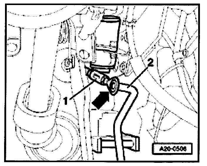 - Disconnect operating rod -1- from accelerator pedal -2- -arrow-.