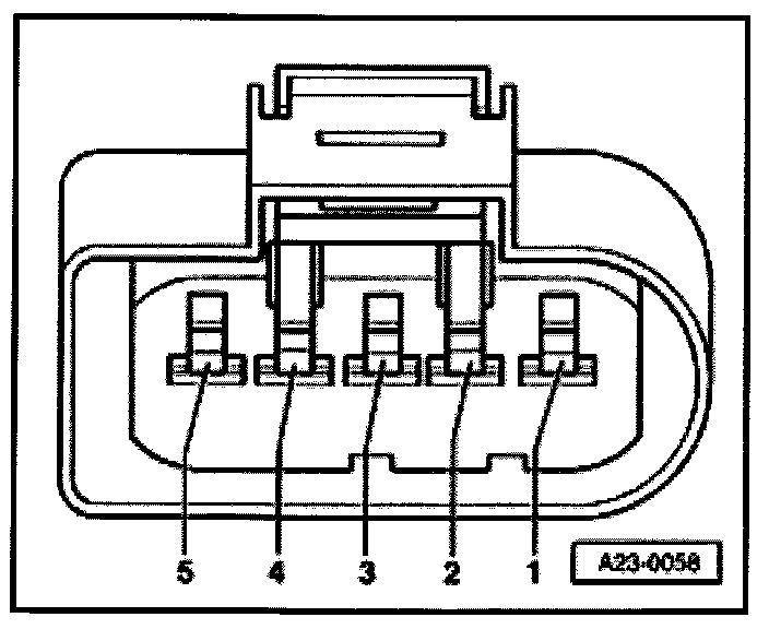 - Connect hand-held multimeter (voltage measurement range) between sockets 2 and 3 of connector.