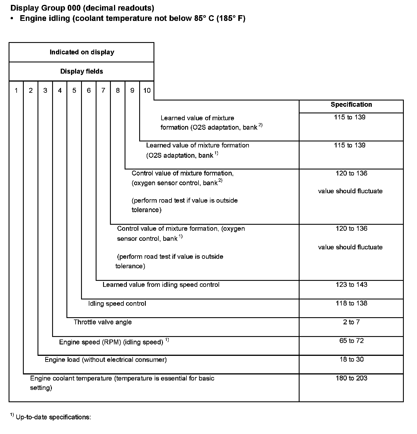 - Allow engine to idle for a few minutes; coolant temperature at least 85 °C (185 °F) (at least 180 in display field 1)