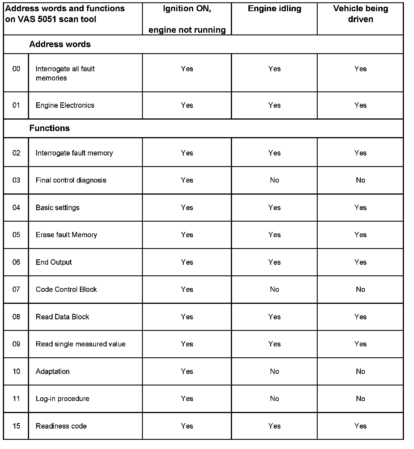 Address Word and Functions On VAG1551 Scan Tool