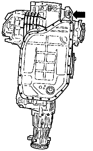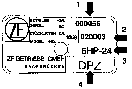 - The identification plate (arrow) is located in front of the oil pan on the bottom of the side of the transmission.