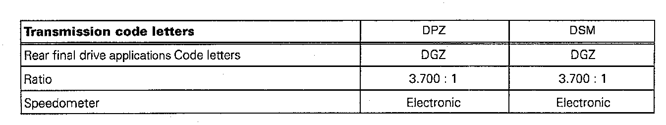 NOTE: The code letters of the transmission are also listed on the vehicle data plate.