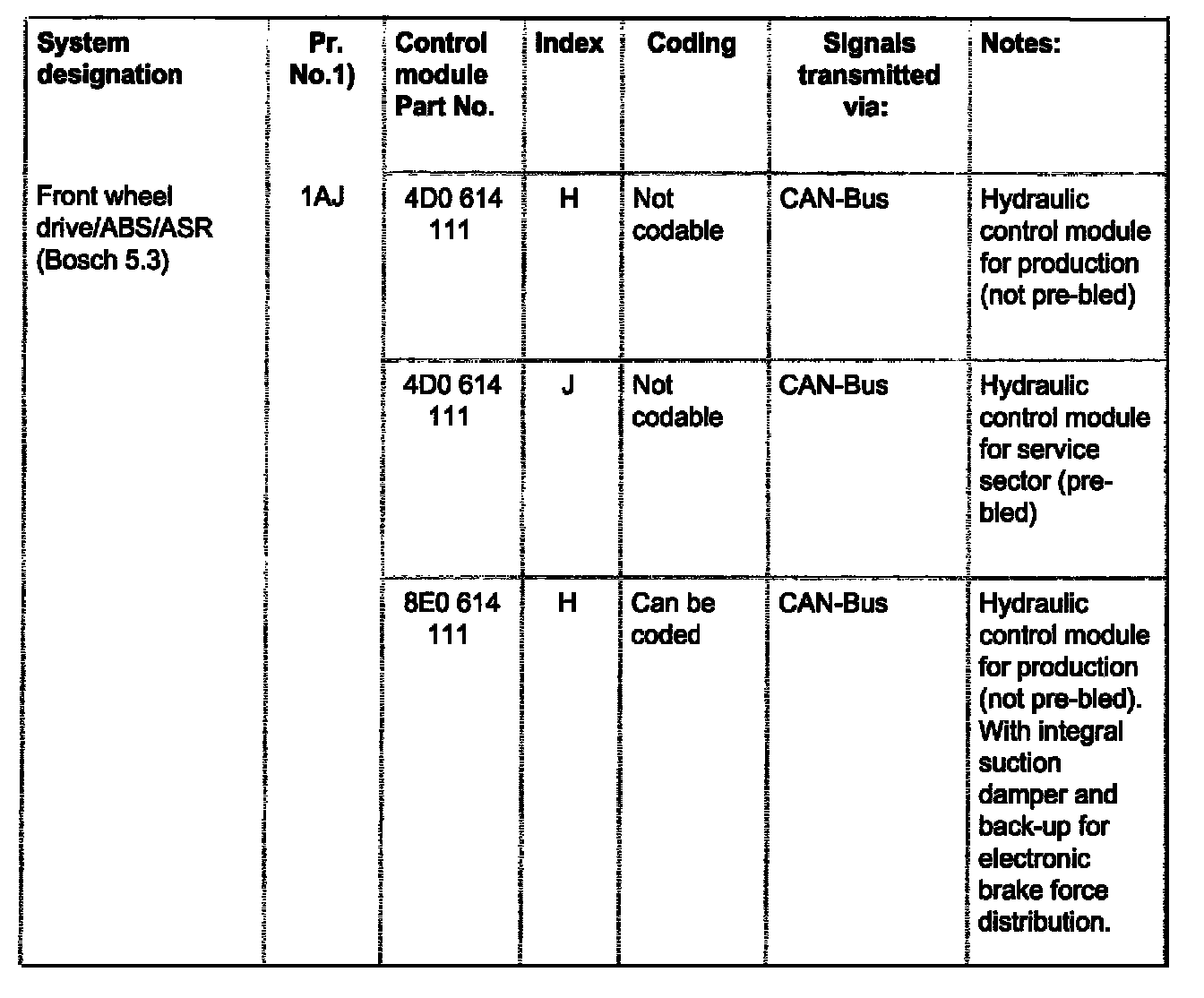 ABS, EDL, ASR Control Module Versions