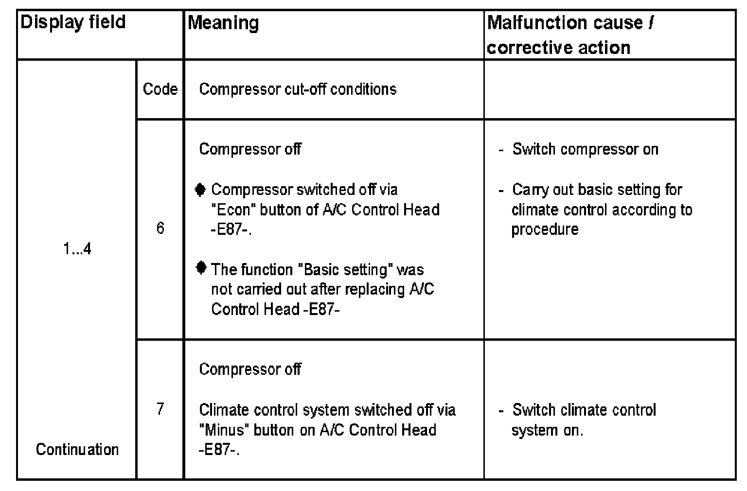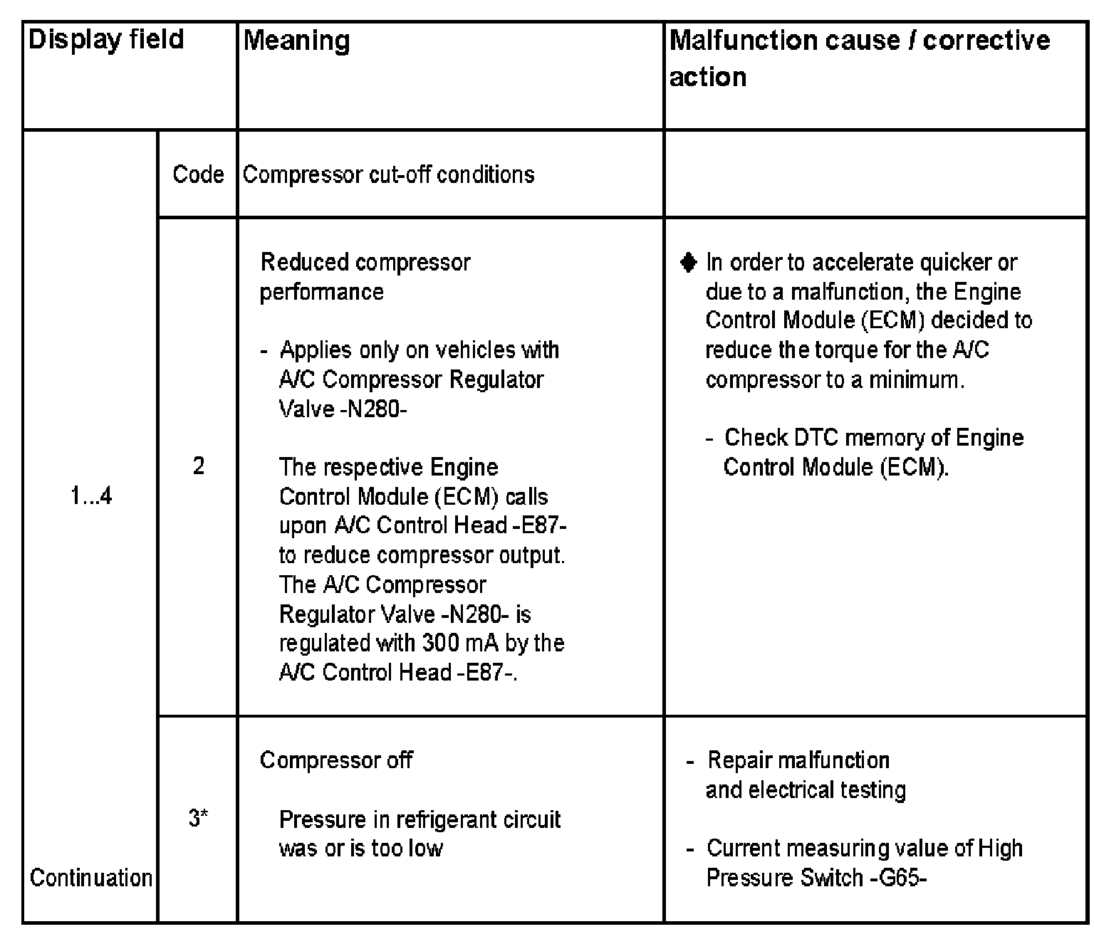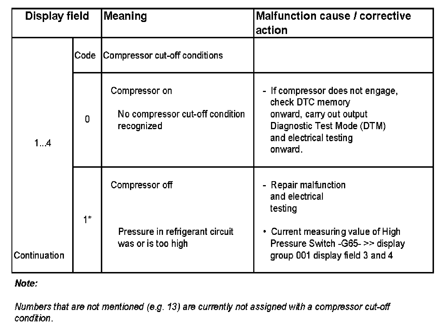 Interpretation of compressor cut-off condition for display field 1 - 4:Display Field 1 - 4, Part 1: