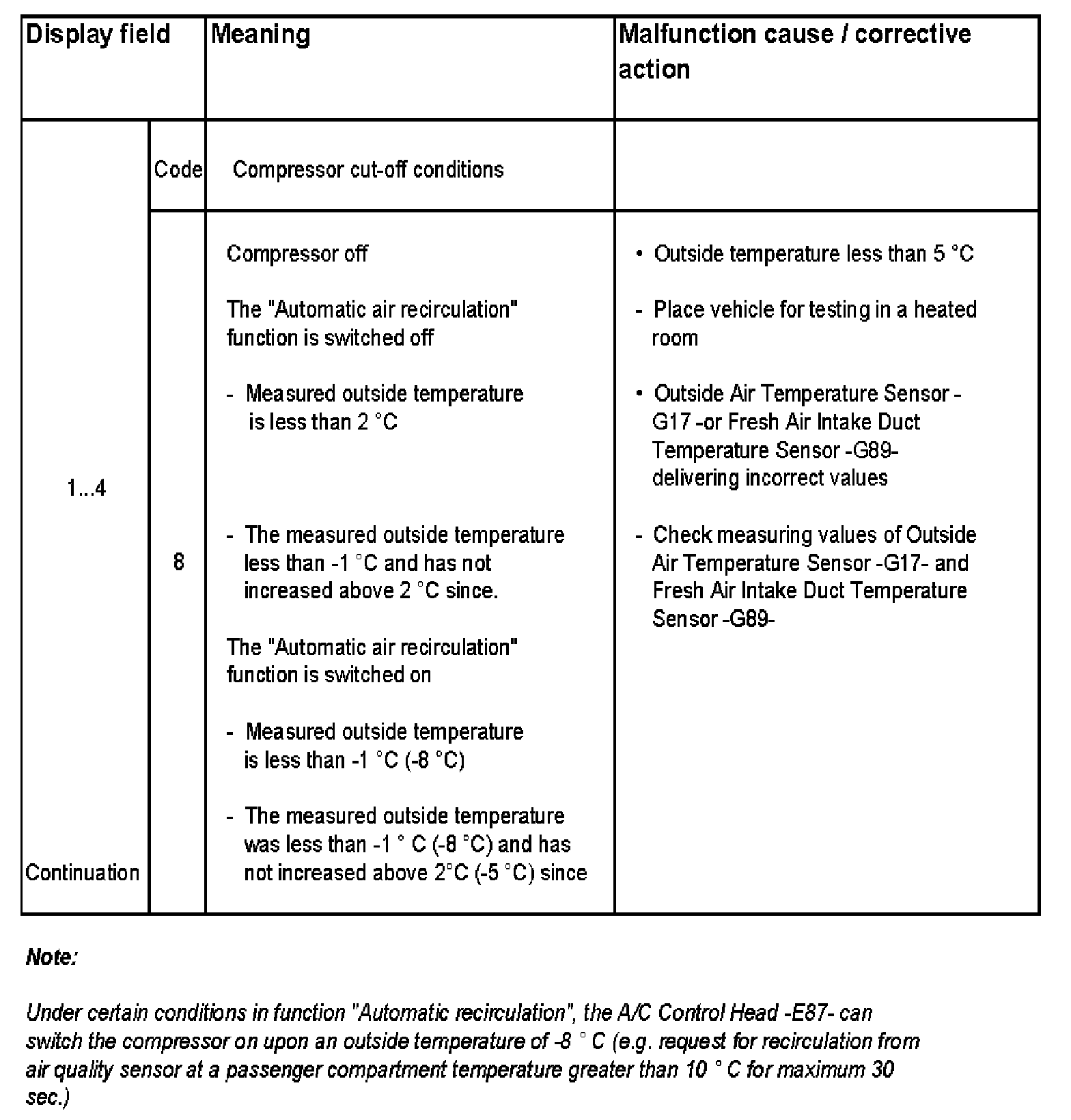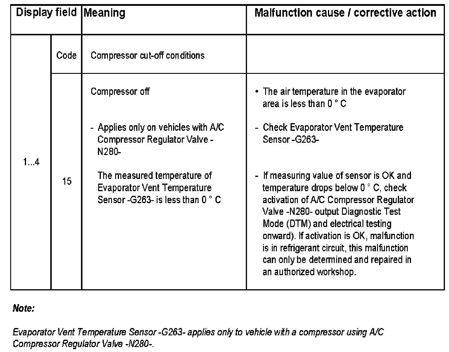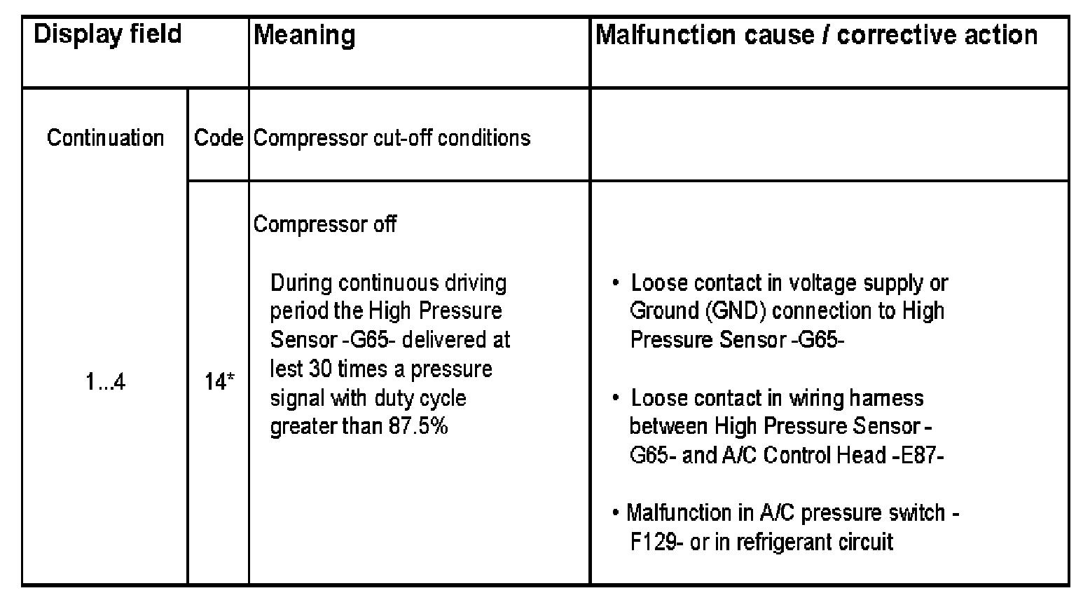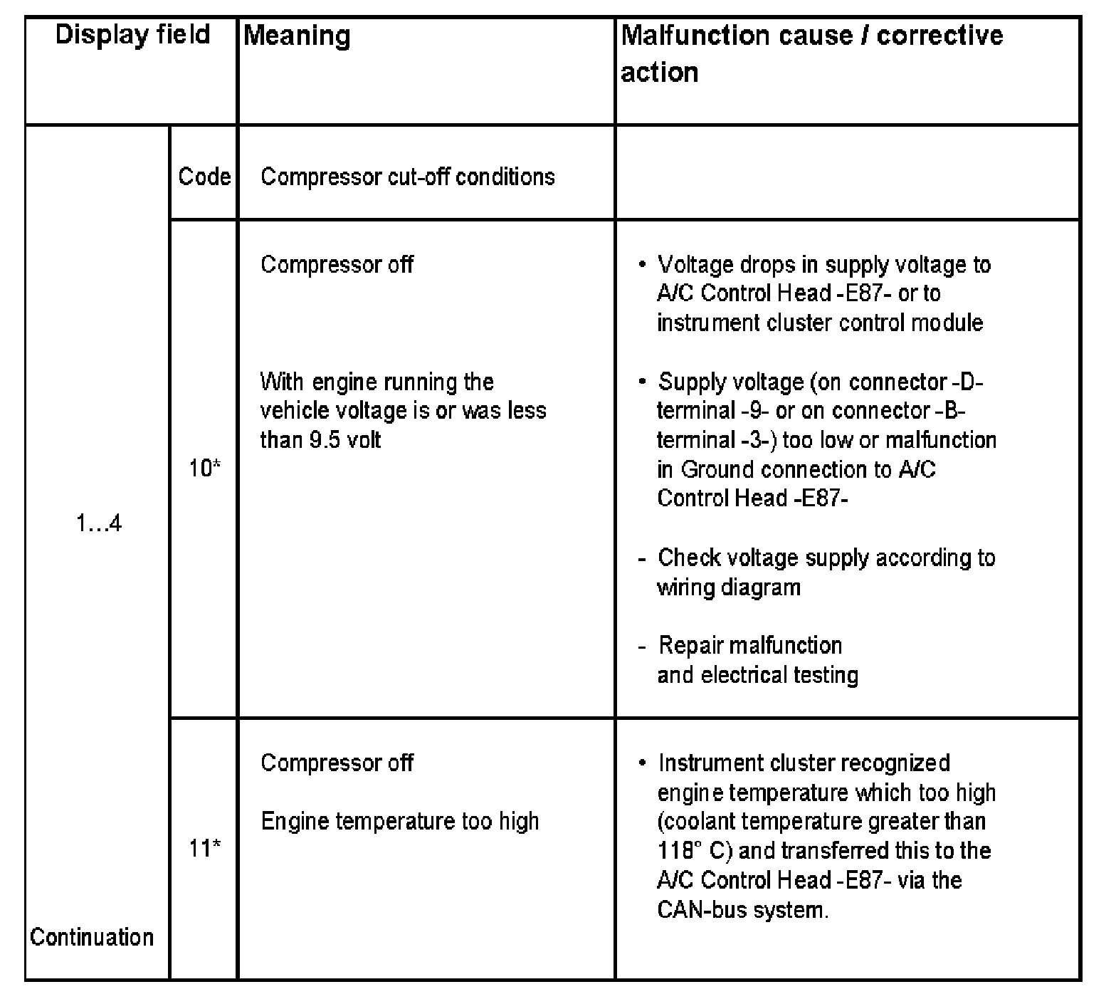 Interpretation of compressor cut-off condition for display field 1 - 4:Display Field 1 - 4, Part 1: