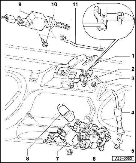 - To remove, swing out hinge arm - 2 - from operating rod - 4 - and unhook from tailgate lock.