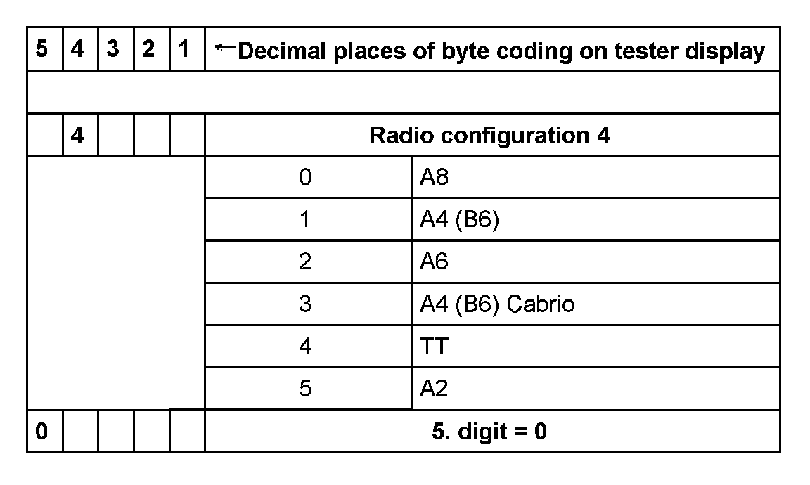 - Radio configuration 2: 3 = with navigation and Telephone