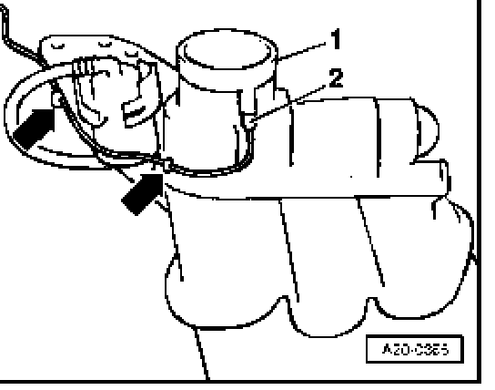 ^ Ensure connector -2- of Ground (GND) connection fits securely at metal ring -1- of fuel filler tube.