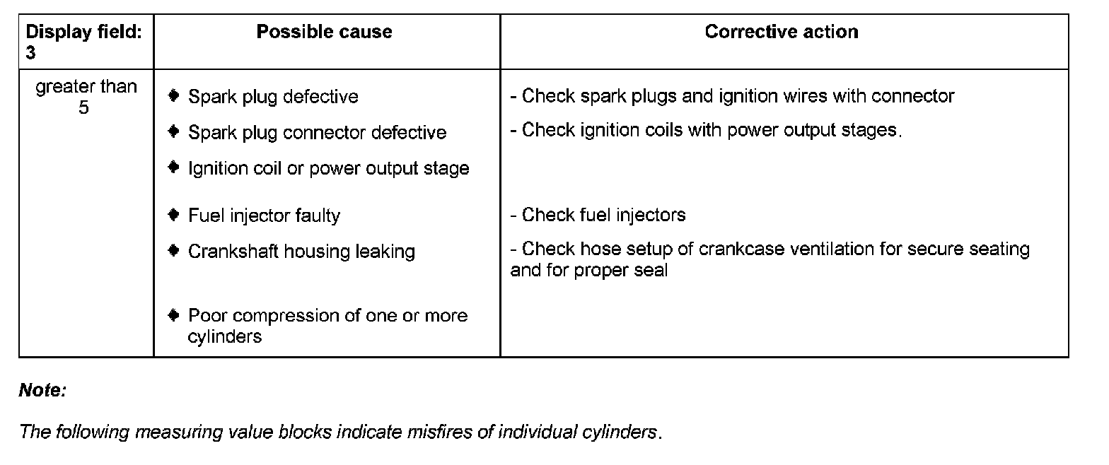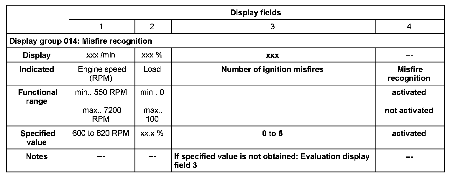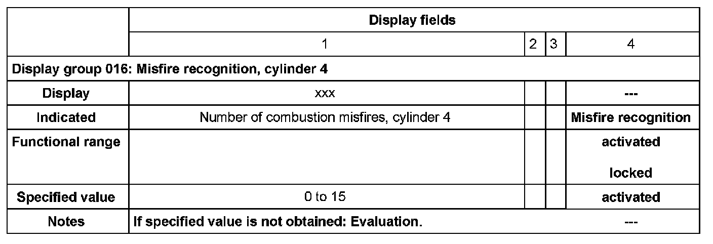 The following measuring value blocks indicate combustion misfires of individual cylinders: