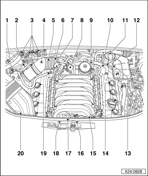 2 - Mass Air Flow (MAF) Sensor -G70- with Intake Air Temperature (IAT) Sensor -G42- => [ Mass Air Flow (MAF) Sensor ] See Image Below.