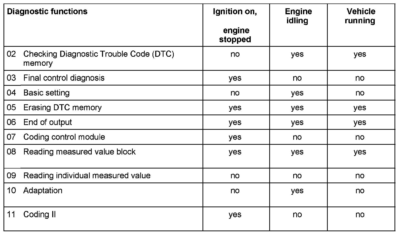 Selection Of Diagnostic Functions
