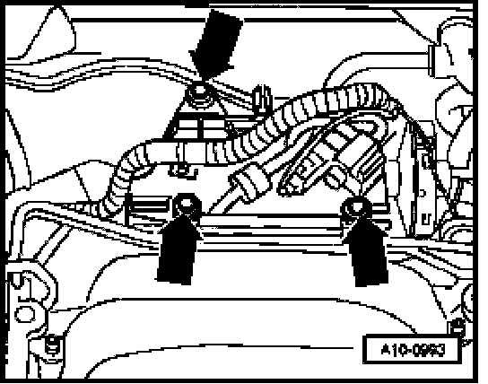 - Disconnect pressure hose (arrow) at Secondary Air Injection (AIR) pump motor and blow air in with light pressure (do not use pressurized air).