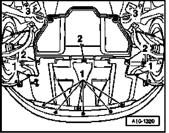 - Remove bolts or quick-release screws -1- and -2- and remove front noise insulation.
