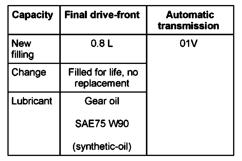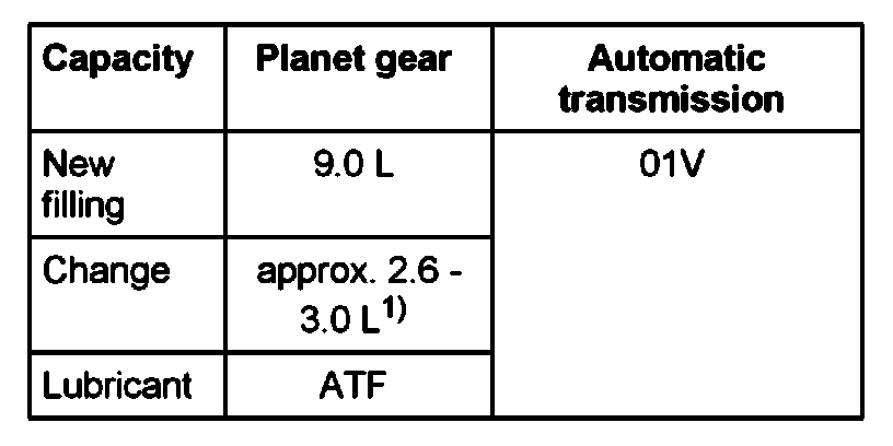 Only ATF available as a replacement part must be used in the planetary gear of the automatic transmission 01V.