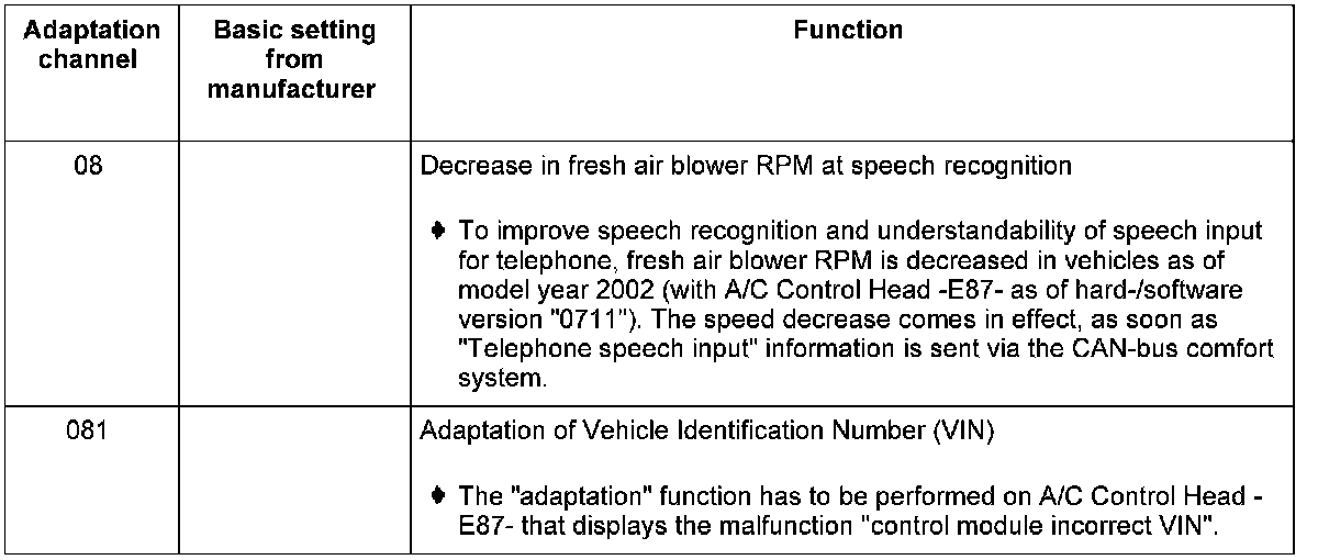 - Adaptation channels 01, 02, 06 and 07 are in effect only for vehicles in which the auxiliary heater is installed as optional equipment. Since the auxiliary heater is not available for the USA, these adaptation channels are to be disregarded for USA.