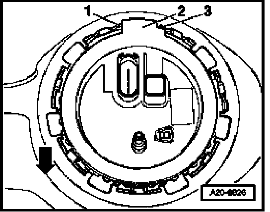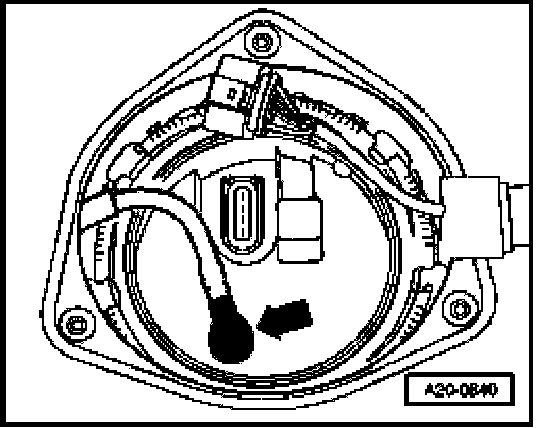 - Carefully pull flange with fuel gauge sender II a short distance out of fuel tank opening together with seal.