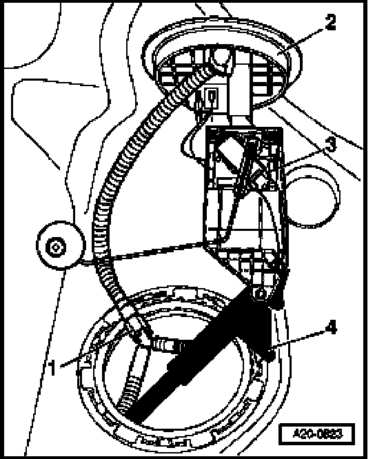 - Swivel flange -2- with fuel gauge sender II -3- and suction jet pump -4- out of fuel tank opening.