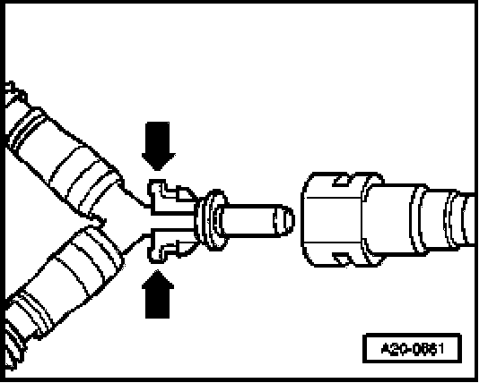 - Press release catches -arrows- and disconnect fuel line at Y-connector.