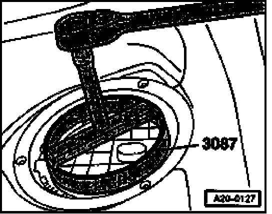- Remove locking ring (left side of vehicle) using wrench for fuel gauge sender unit 3087.