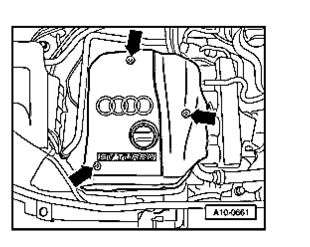 - Remove engine cover (arrows).