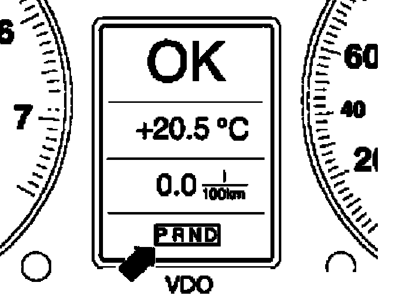 1. The trouble code is stored and a substitute program allows the vehicle to continue to be driven (with some limitations). The driver is not alerted to this condition, since it is not critical to safety nor for the transmission. The transmission range display in the instrument cluster indicates as normal the particular range that has been selected -arrow-. The driver may notice a difference in vehicle driveability and contact an authorized dealer.