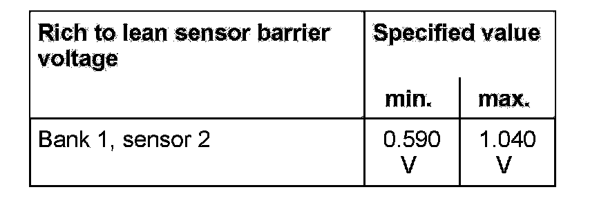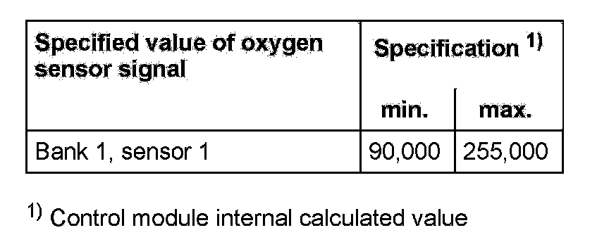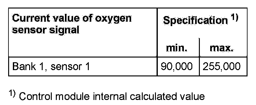 The values of the individual oxygen sensor signal outputs must reach the specified value or must be within the min.- and max.- limits.
