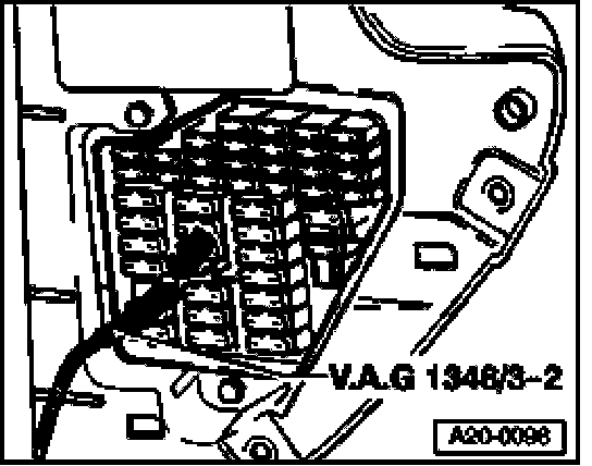 - Connect V.A.G 1348/3A remote control connection using adapter cables from VAG1348/3-2 at right terminal of socket from Fuse in fuse holder -S228- (arrow).