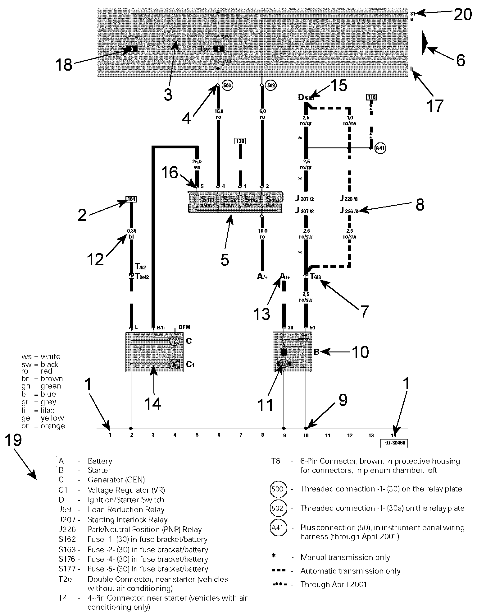 The legend contains the explanations for all of the designation codes used within the diagram. In all wiring diagrams the same component designation (code) is used for a particular component. For example, always "A" for the battery.