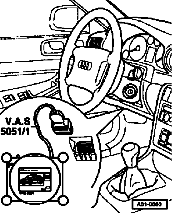 ^ Connect OBD Tester and Information System VAS 5051 with adapter cable VAS 505 1 /1 . As an alternative connect V.A. G 1551 Scan Tool (ST) with adapter cable V.A.G 1551/3.