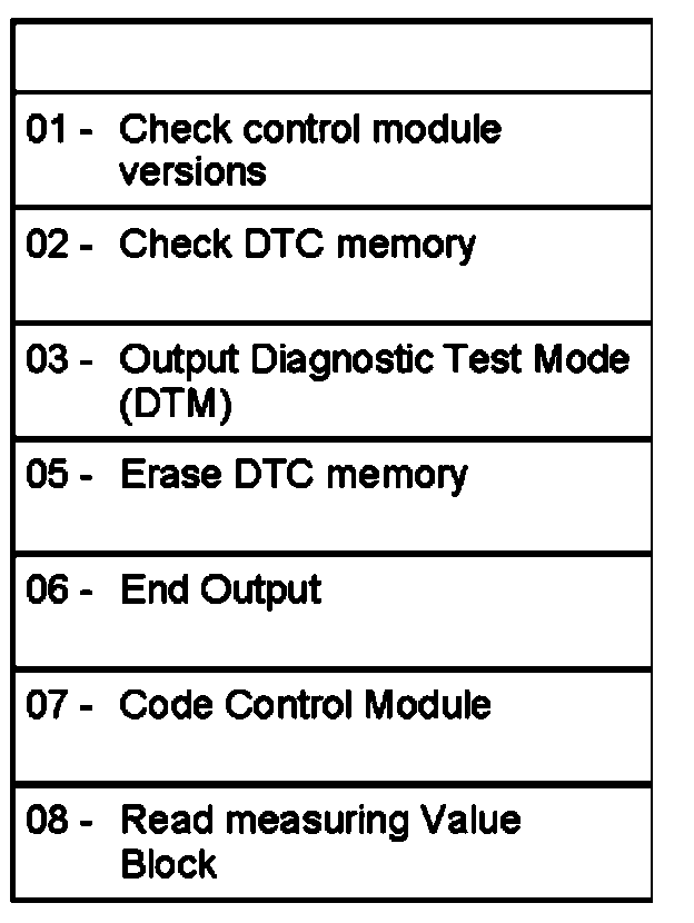 ^ In function I "Rapid data transmission", the automatic test sequence (buttons 00) can be performed. In this function all control modules of the vehicle are automatically checked.