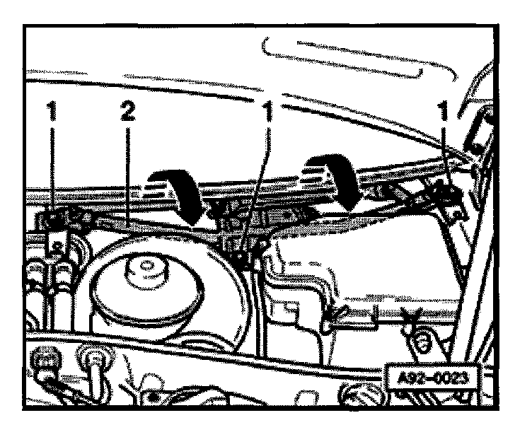 - Remove wiper motor -1- from wiper motor bracket.