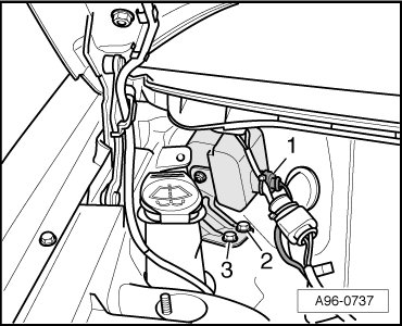 - Remove nuts - arrows - and remove inclination/anti-theft control module (J529) - item 1 -.